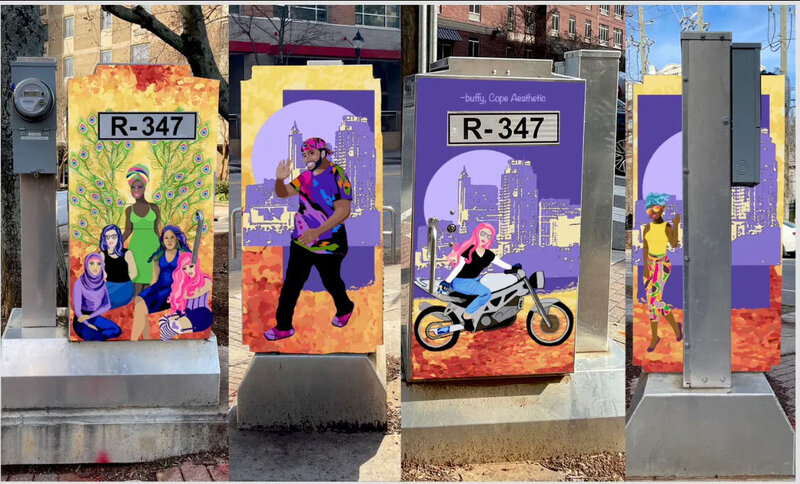 Not all art belongs on a wall. From vinyl-wrapped signal boxes and utility cabinets to chalk art on sidewalks and painted windows on storefronts and vehicles, I design public pieces that engage, delight, and leave a lasting impression. Every project begins with a custom digital design, then is translated into durable, site-specific artwork — installed by trusted vendors or painted directly on location.